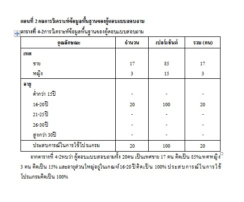 | การวิเคราะห์ข้อมูลการพัฒนาและหาประสิทธิภาพเครื่องกดน้ำร้อนและเย็นอัตโนมัติมีการวิเคราะห์โดยแยกเป็นตอนตามวัตถุประสงค์ของการศึกษาและผลการวิเคราะห์ข้อมูลโดยนำเสนอตามลำดับ ดังต่อไปนี้ ผลการวิเคราะห์ข้อมูลนำเสนอรวม 5 ตอน ดังนี้ ตอนที่ 1ผลการวิเคราะห์ข้อมูลประสิทธิภาพของนวัตกรรม ตอนที่ 2ผลการวิเคราะห์ข้อมูลพื้นฐานของผู้ตอบแบบสอบถาม ตอนที่ 3ผลการวิเคราะห์ข้อมูลประเมินผลการใช้นวัตกรรมด้านโครงสร้าง ตอนที่ 4ผลการวิเคราะห์ข้อมูลประเมินผลการใช้นวัตกรรมด้านการใช้งาน ตอนที่ 5ผลการวิเคราะห์ข้อมูลประเมินผลการใช้นวัตกรรมด้านความคุ้มค่า ตอนที่ 6ผลการวิเคราะห์ข้อมูลประเมินผลการใช้นวัตกรรมด้านคุณค่า ตอนที่ 7ผลการวิเคราะห์ข้อมูลประเมินผลการใช้นวัตกรรมในภาพรวมทุกด้าน สัญลักษณ์ที่ใช้ในการแปรผลการวิเคราะห์ข้อมูล แทน ค่าเฉลี่ยS.D แทน ค่าความเบี่ยงเบนมาตรฐาน P แทน ค่าร้อยละ 4.1 ผลการวิเคราะห์ข้อมูลประสิทธิภาพของนวัตกรรม ตอนที่ 1 ผลการวิเคราะห์ข้อมูลประสิทธิภาพของนวัตกรรม ตารางแสดงการวิเคราะห์ข้อมูลประสิทธิภาพของเครื่อง ตารางที่ 4-1 ผลการวิเคราะห์ข้อมูลประสิทธิภาพของนวัตกรรม ![]() ![]() ![]() ![]() ![]() ![]() |